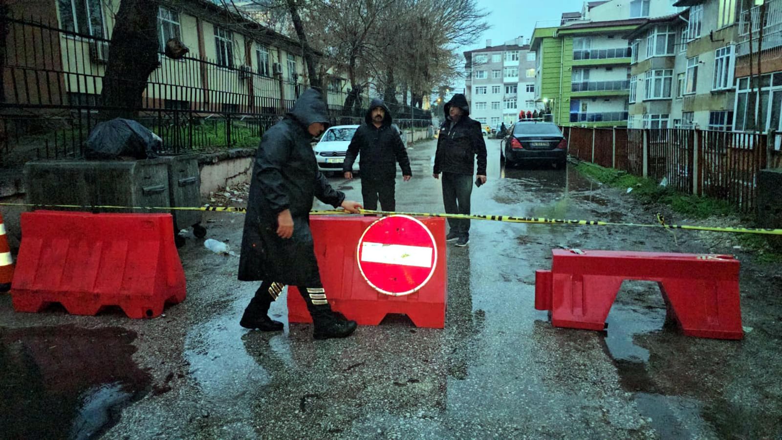 Apartman sakinleri de inceleme sürürken evlerinden dışarı çıktı. Apartmanın girişinde iş yeri bulunan Gökhan Demirci, “Otururken aniden bir ses geldi. Deprem oluyor zannettik. Sonra çıkıp baktığımızda istinat duvarının yıkıldığını gördük” dedi.