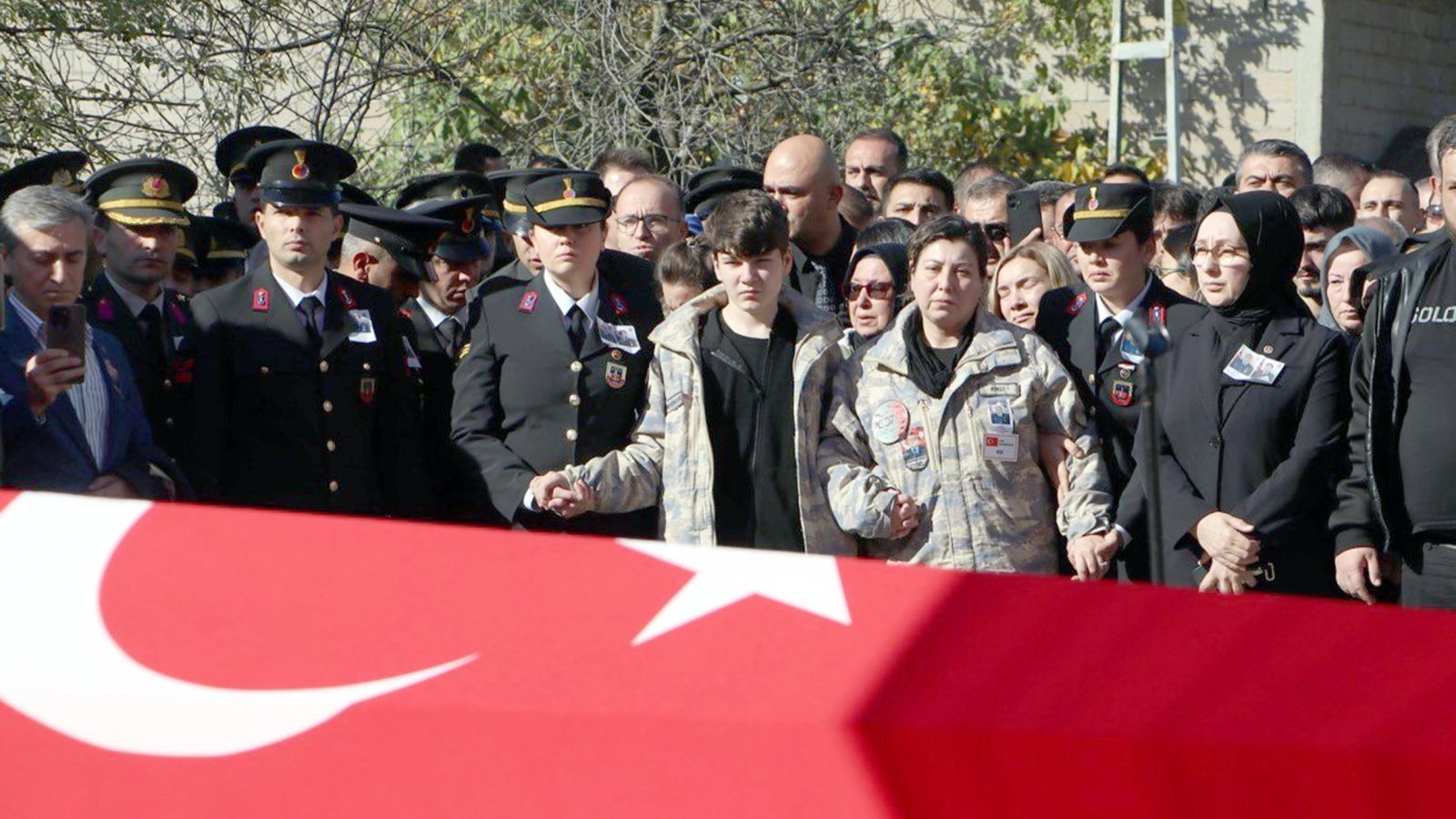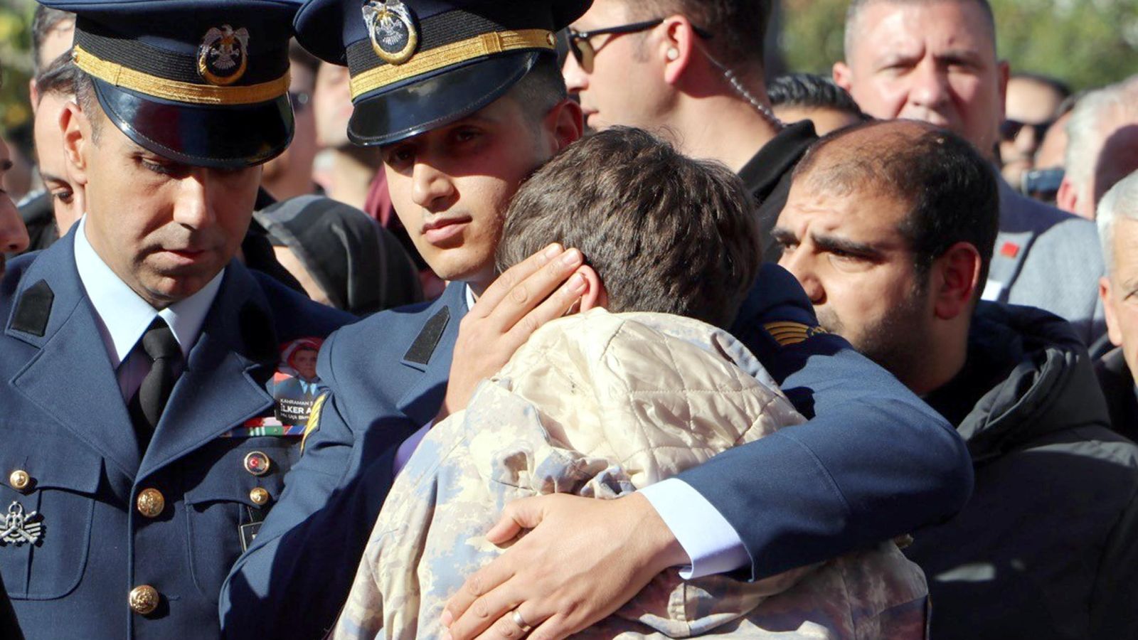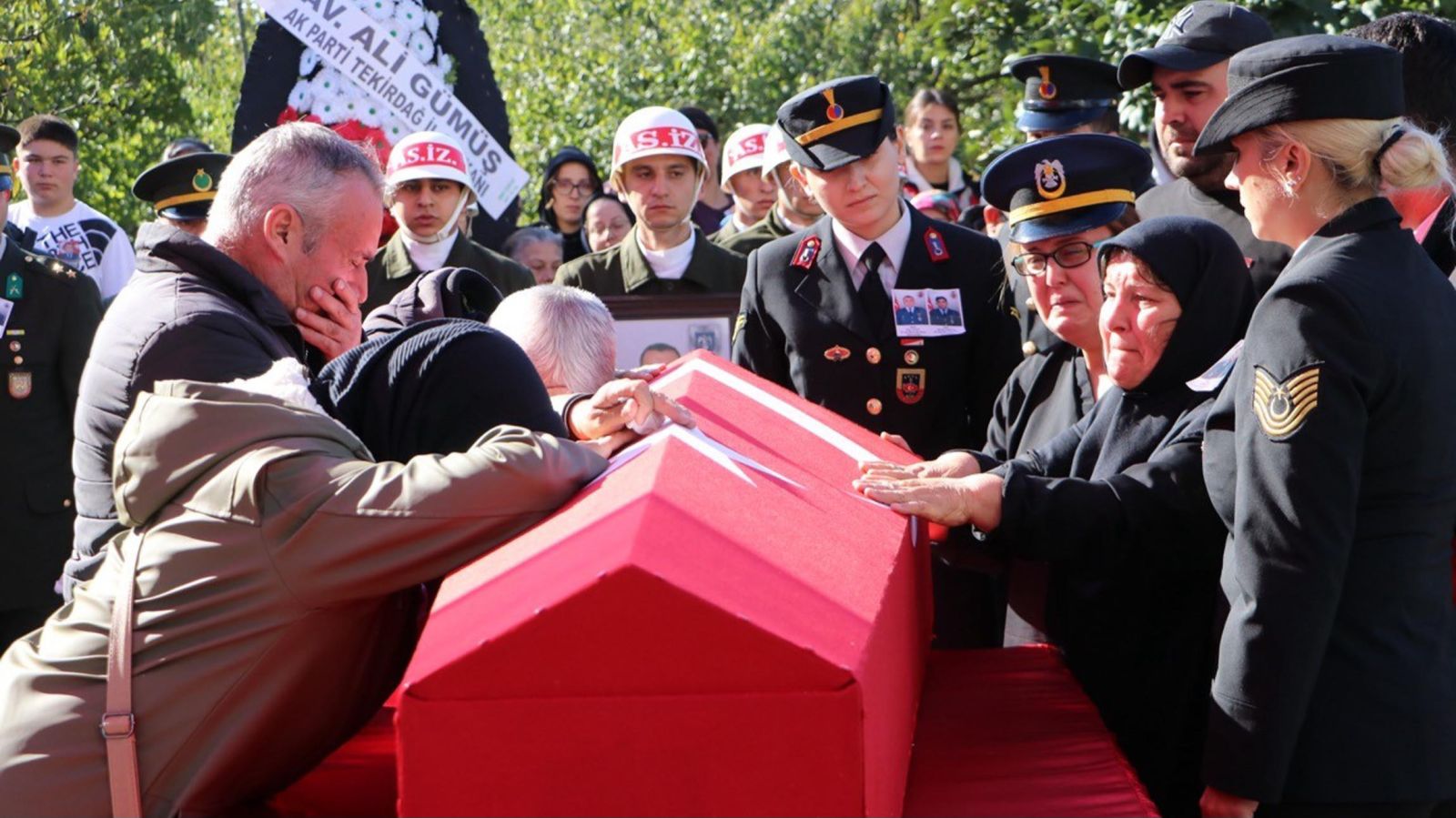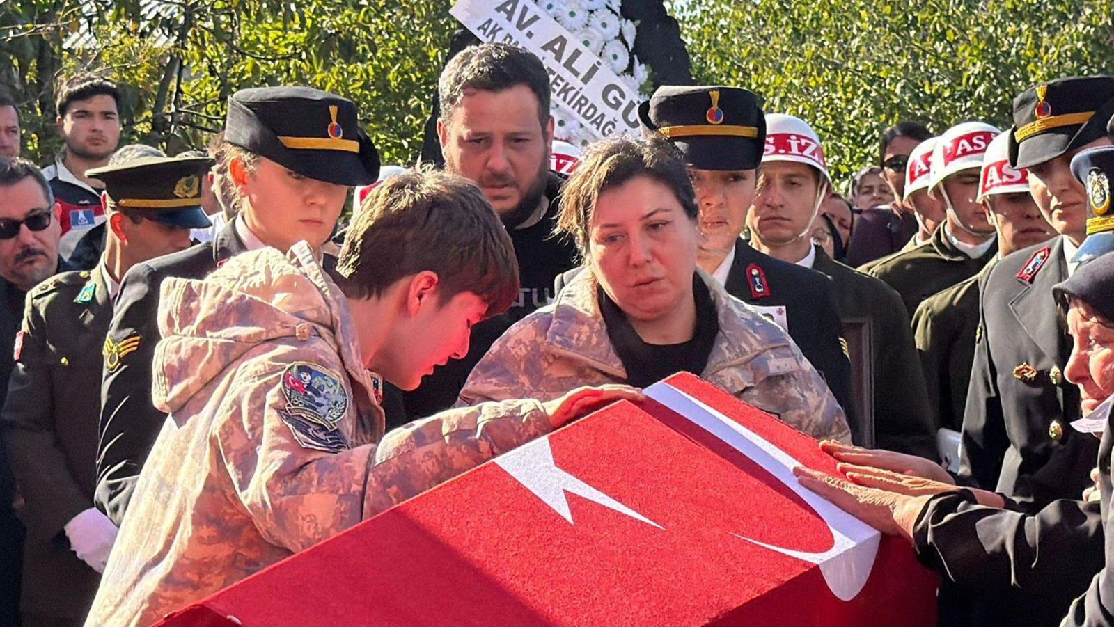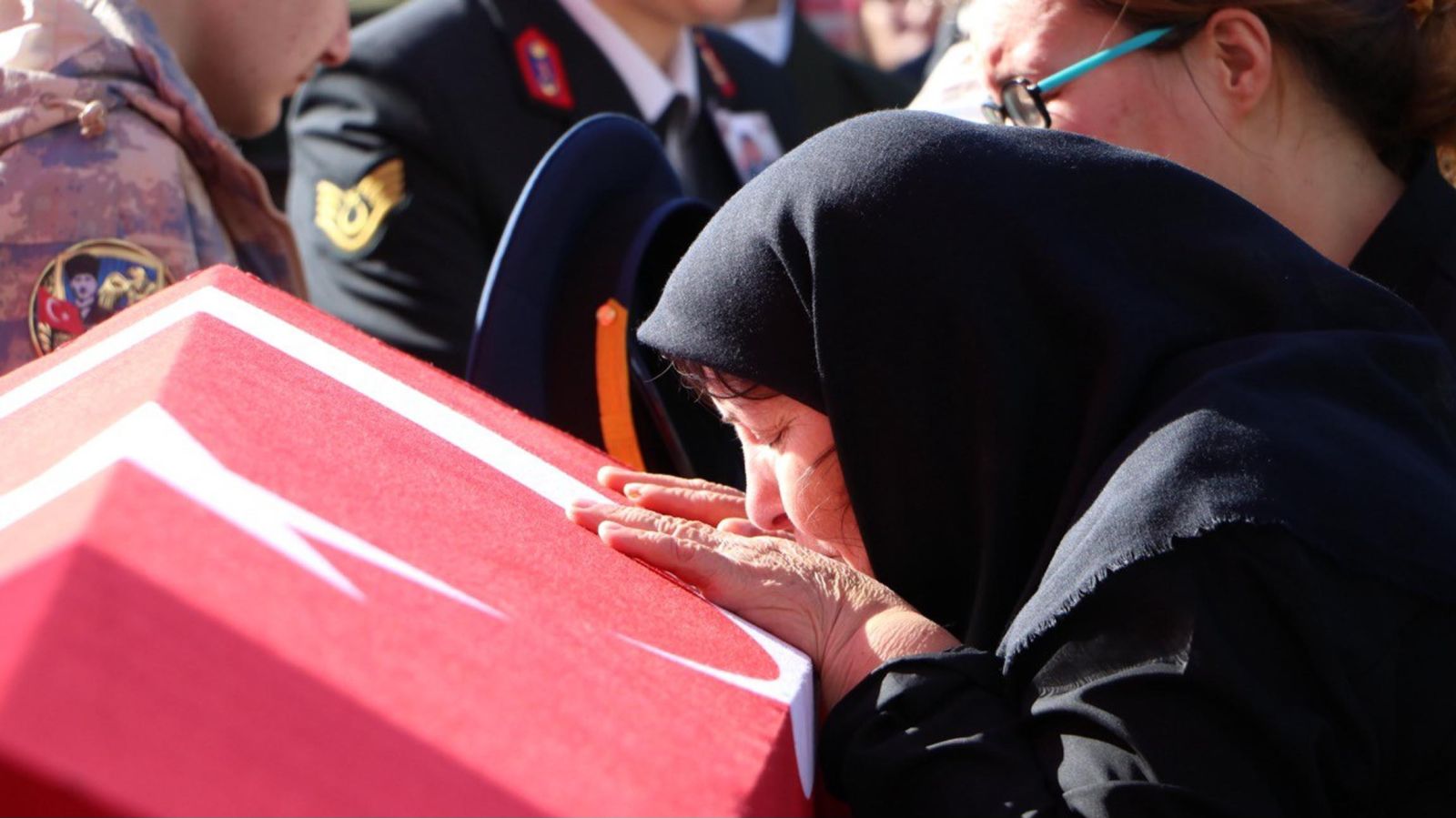 Anne ile oğlu, Türk bayrağına sarılı tabuta sarılıp, gözyaşları döktü. Tabuta sarılıp gözyaşı döken şehidin annesi Zülbiye Aykut, yakınları tarafından teselli edildi.