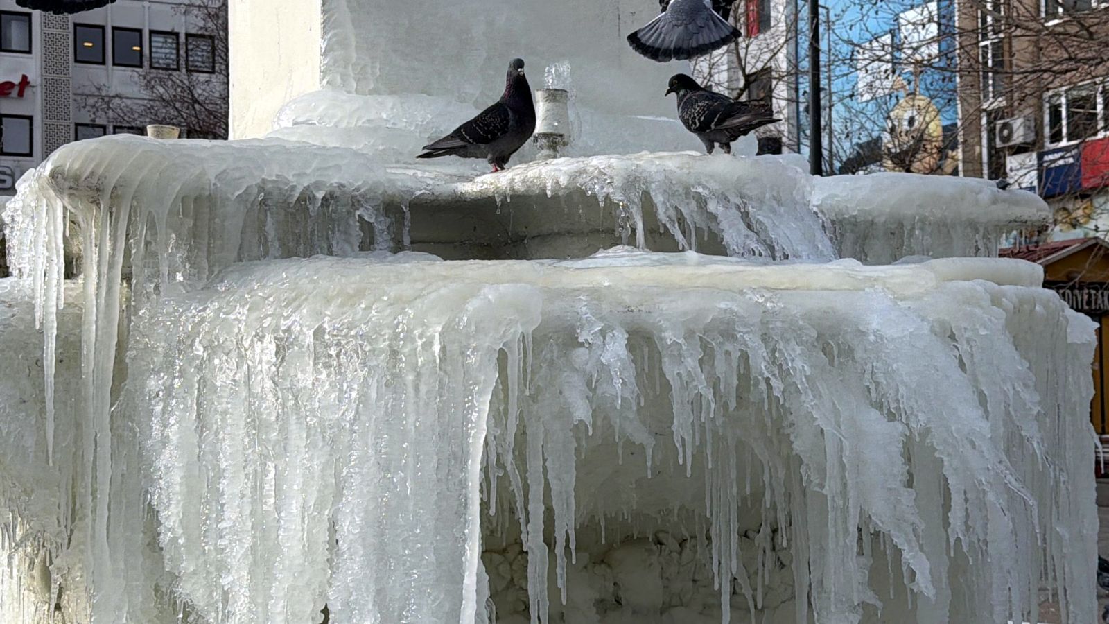Sıcaklıkların sıfırın altına düşmesinin ardından kent genelindeki süs havuzları dondu. Cumhuriyet Meydanı’ndaki Çorlu Belediyesi önündeki havuzun donduğunu görenler çevredekiler şaşkınlık yaşadı.