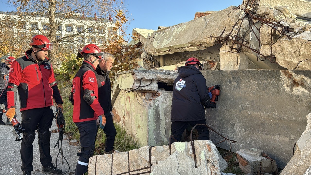 Senaryo gereği enkaz altında kalan bir kişinin kurtarıldığı operasyonda, yeri iz takip ve arama kurtarma köpekleri tarafından tespit edildi. Ekipler, enkazda gerekli güvenlik ve kurtarma çalışmalarını yaparak yaralıyı bulunduğu noktadan çıkardı.