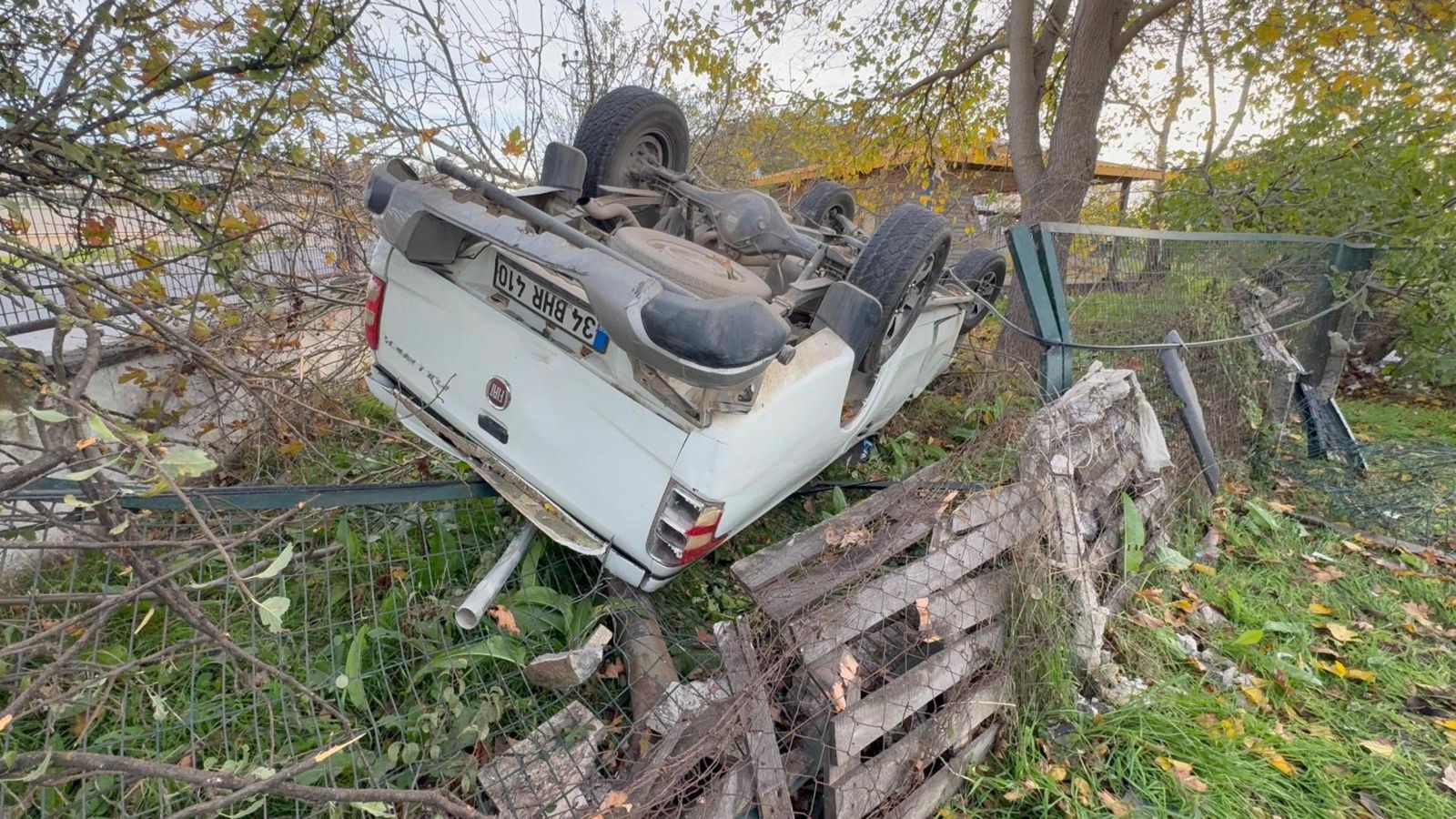 Çarpmanın şiddetiyle savrulan kamyonet takla atarak iş yerinin bahçesine girdi. Kazada F.K ile yanındaki eşi E.K. yaralandı. İhbarla kaza yerine polis ve sağlık ekipleri sevk edildi.