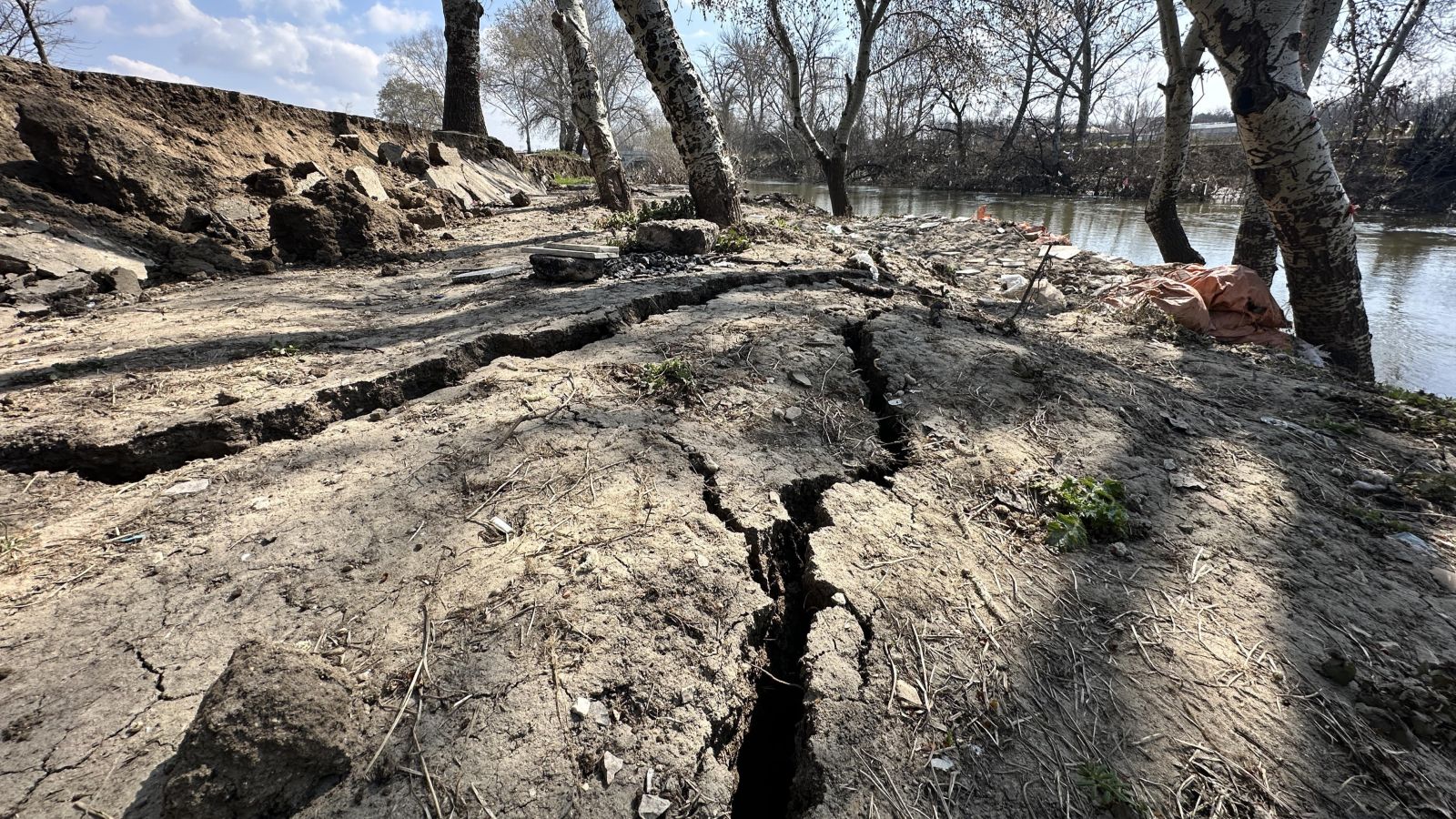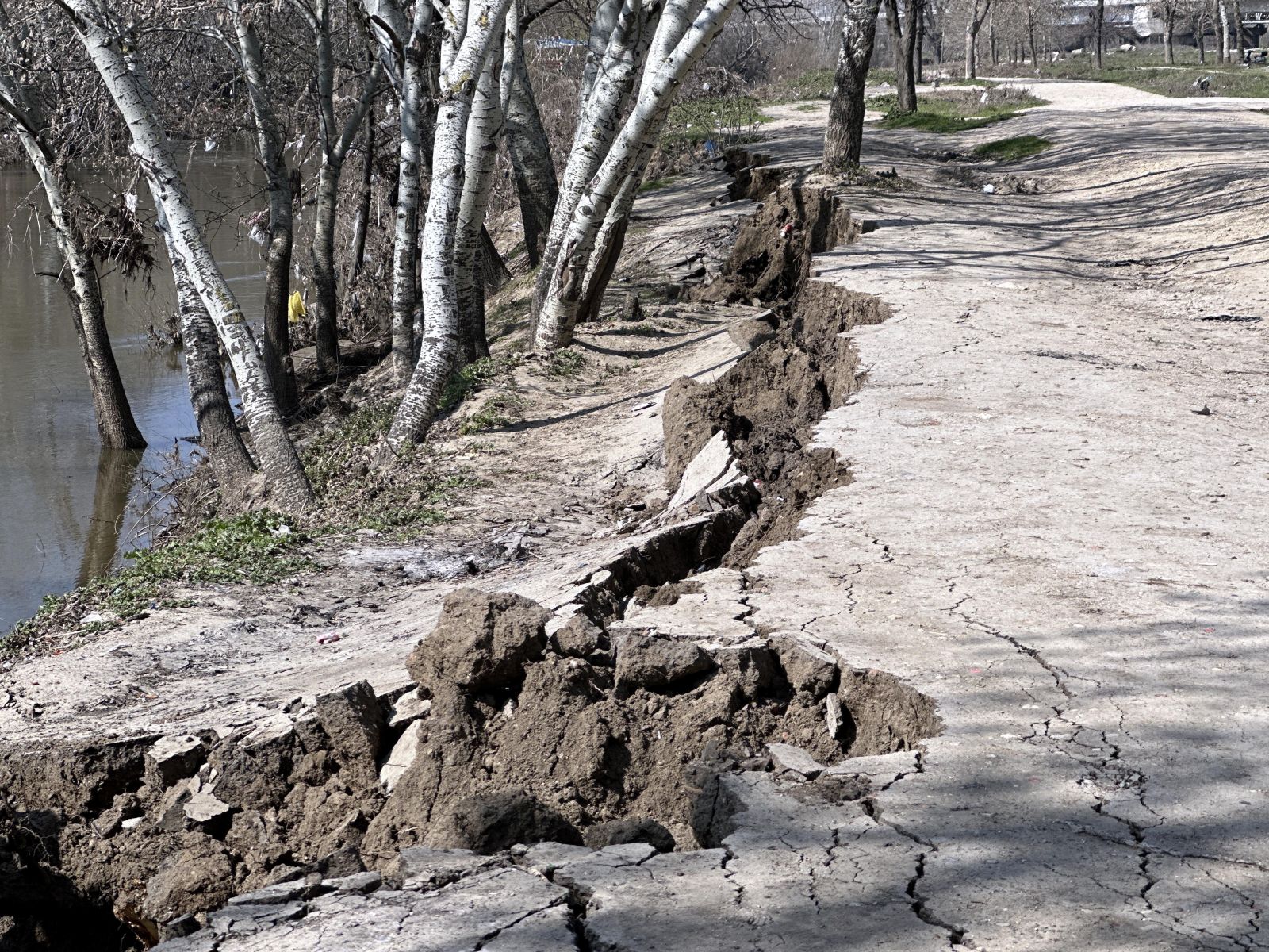 Tunca Nehri'nin seviyesi daha düşük olduğu için buradaki dik kıyılarda Meriç'ten Tunca'ya doğru akan suyun bir kayma yüzeyi oluşturması, bir gevşeklik oluşturmasına bağlı olarak buradaki yamaçlar gerilemek durumundadır. Buna da biz kütle hareketleri veya heyelan diyoruz. Diğer bir adıysa akarsuda yamaç gerilemesi diyoruz" diye konuştu.