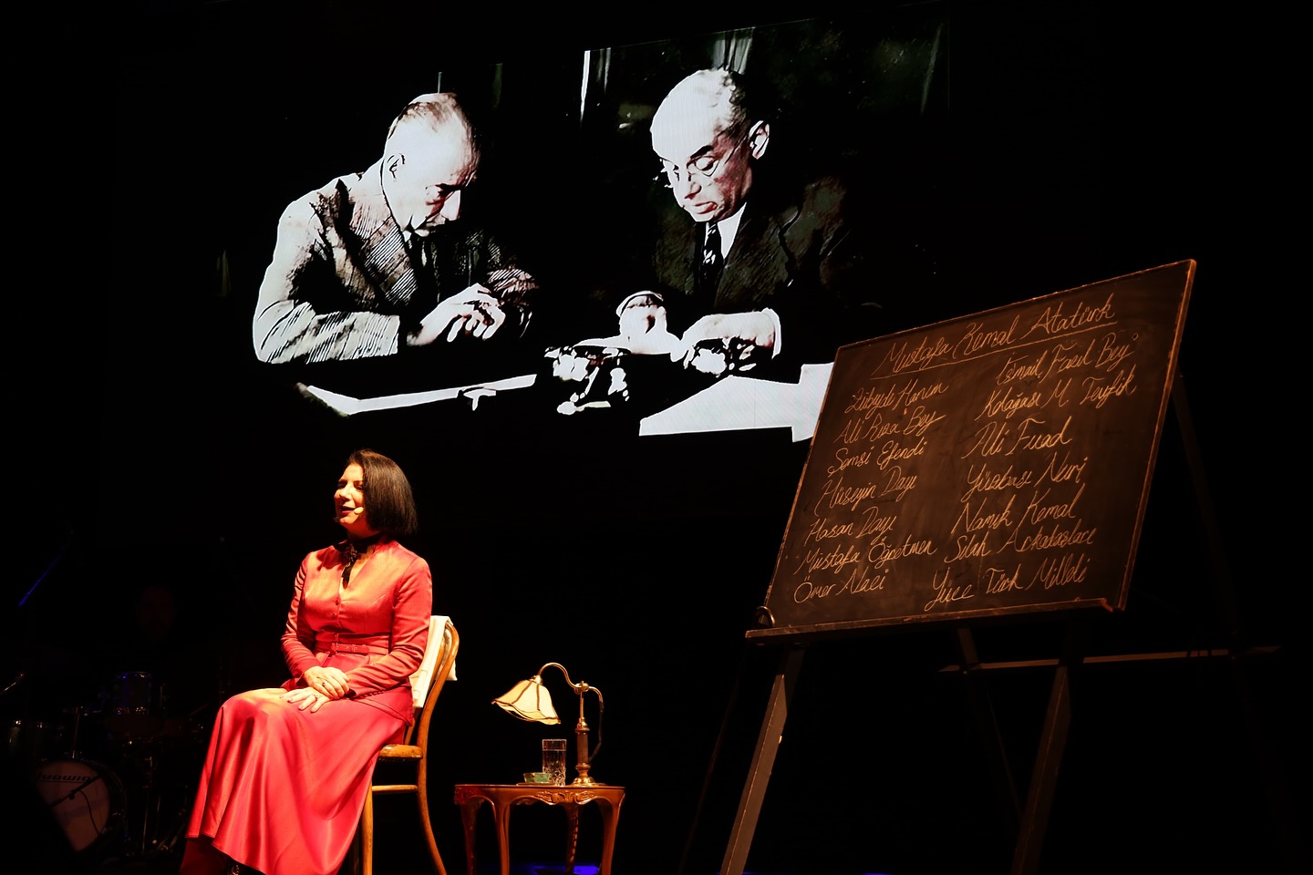 Piyano, klarnet, bağlama ve viyolonsel gibi enstrümanlardan oluşan bir orkestra eşliğinde sahne alan Pınar Ayhan, Mustafa Kemal Atatürk’ün hayatına dair az bilinen kesitleri, doğru bilinen yanlışları ve derin anlamlar taşıyan anekdotları seyirciye aktardı.