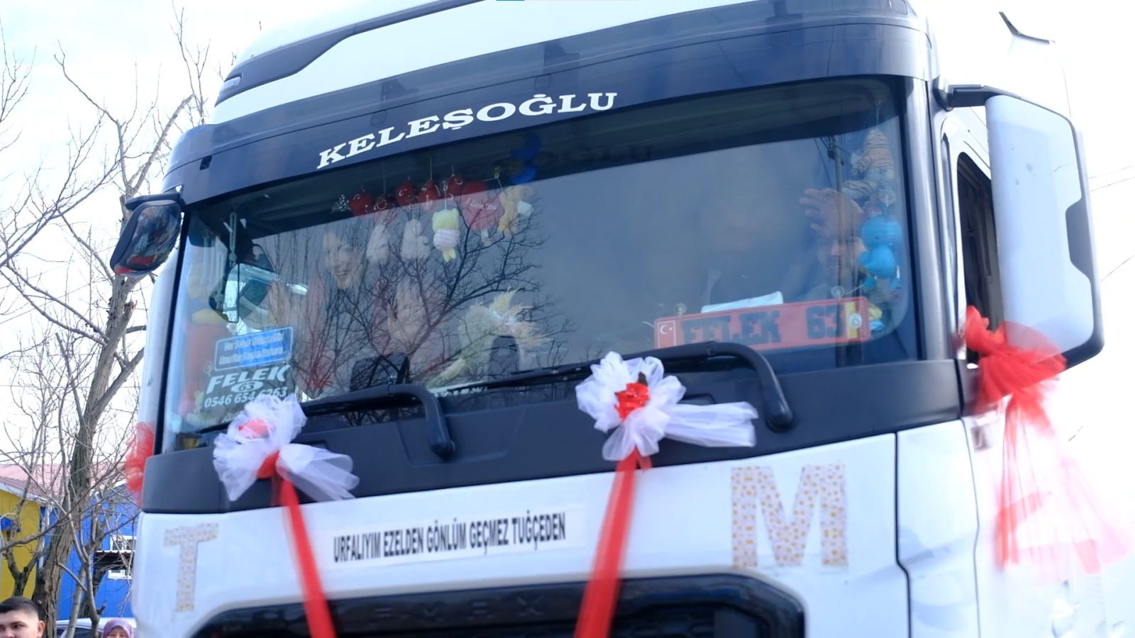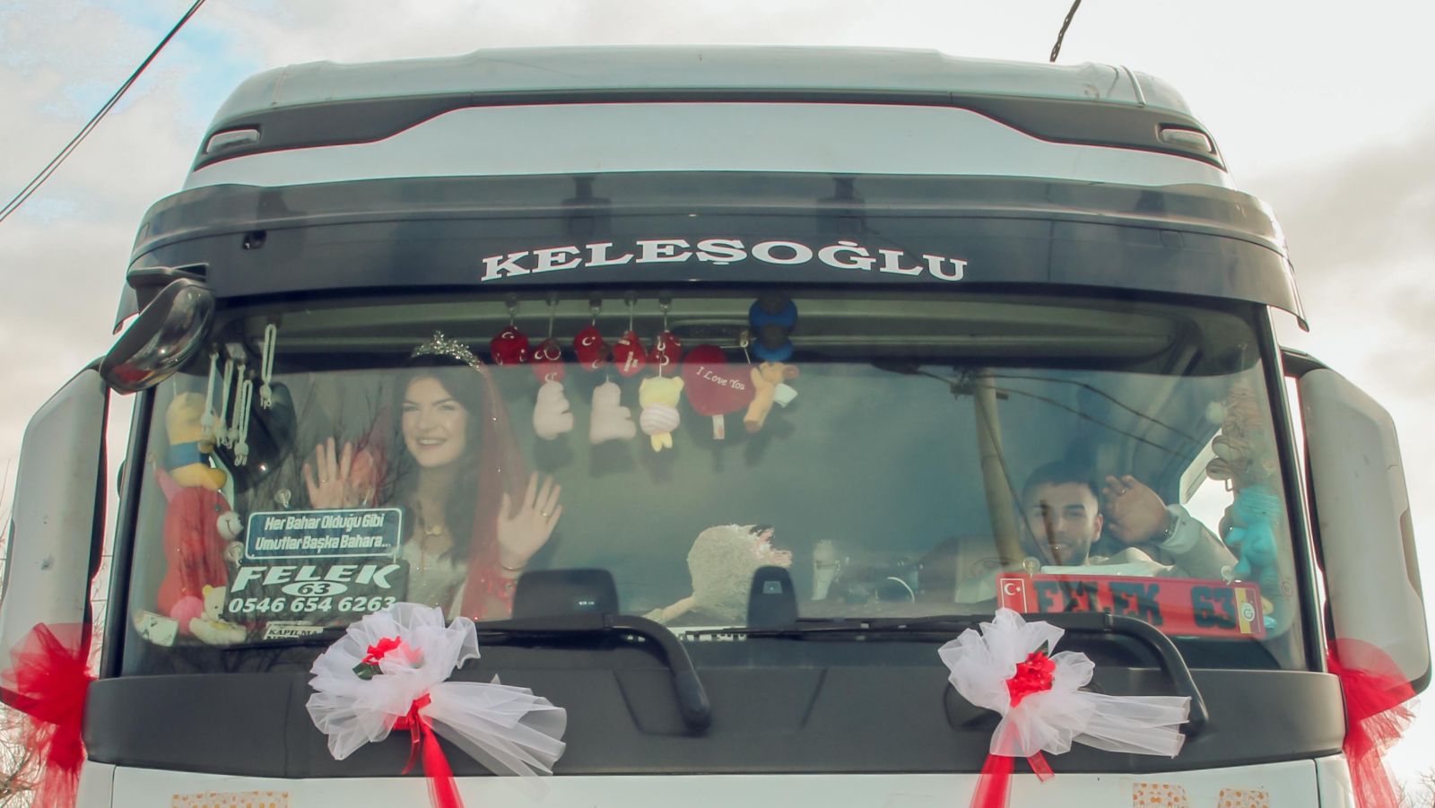 Tuğçe Durak ise TIR'ı gelin arabası olarak gördüğünde heyecanlandığını ifade ederek, "Benim için çok özel ve güzel bir andı. Bu anımızı bu şekilde ölümsüzleştirmek çok güzeldi. Hiç haberim yoktu böyle bir şey olacağından. Dışarı çıkmamada izin vermediler. Bir an görünce şaşırdım. Sürpriz oldu" diye konuştu. (DHA)