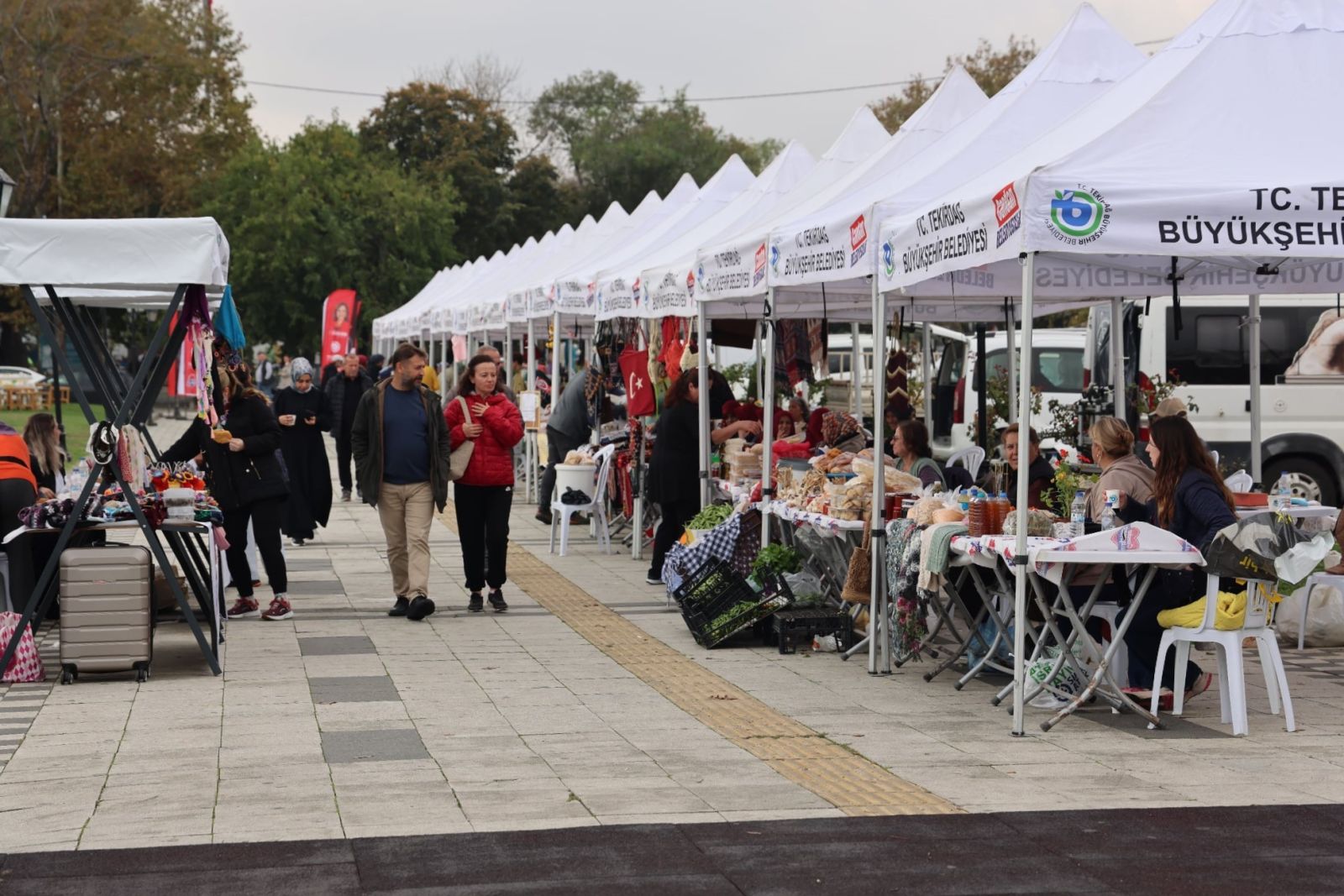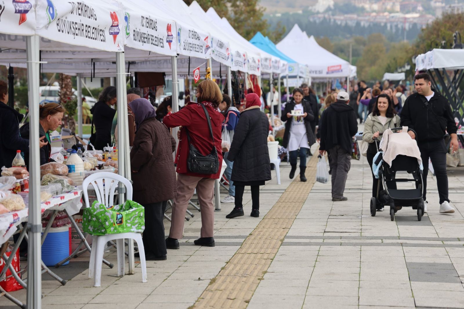 Gıda ürünlerinin yanı sıra, kadınların titizlikle ürettiği el sanatları ve hediyelik eşyalar da pazarda sergilenerek Tekirdağlıların beğenisine sunuldu.