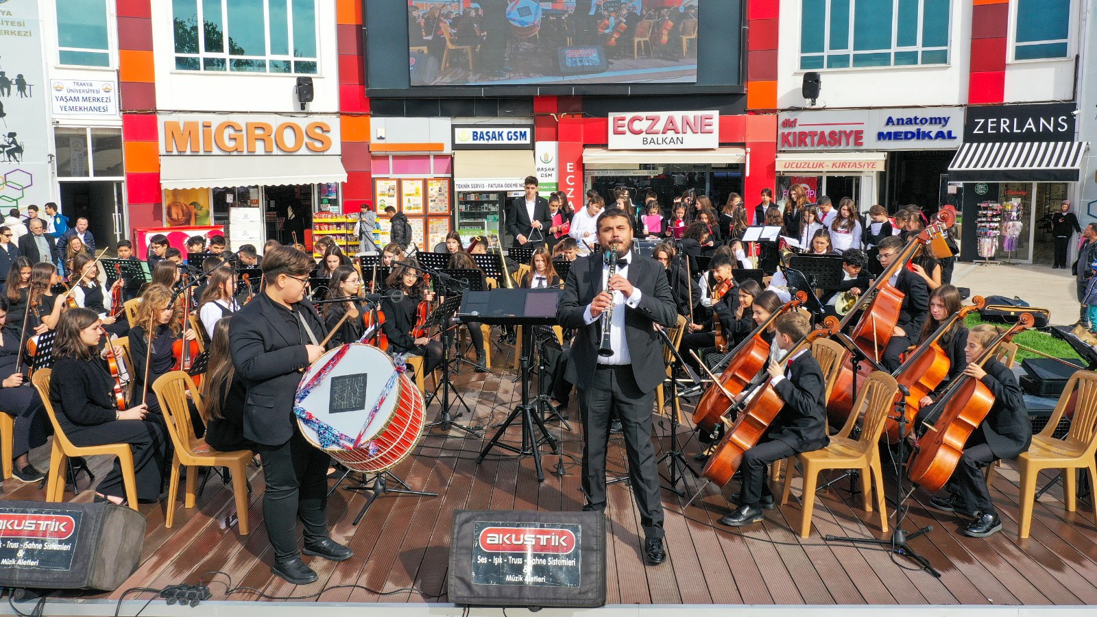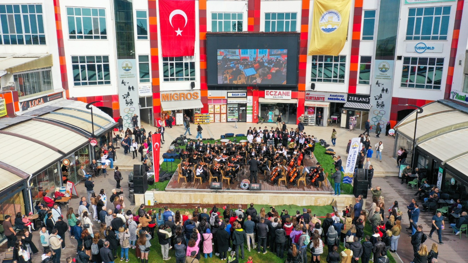 Trakya Üniversitesi Yaşam Merkezi’nde gerçekleştirilen konserin Orkestra Şefliğini Dr. Öğr. Üyesi Vahdet Çalışkan, Koro Şefliğini ise Doç. Dr. Zerrin Tan üstlendi.
