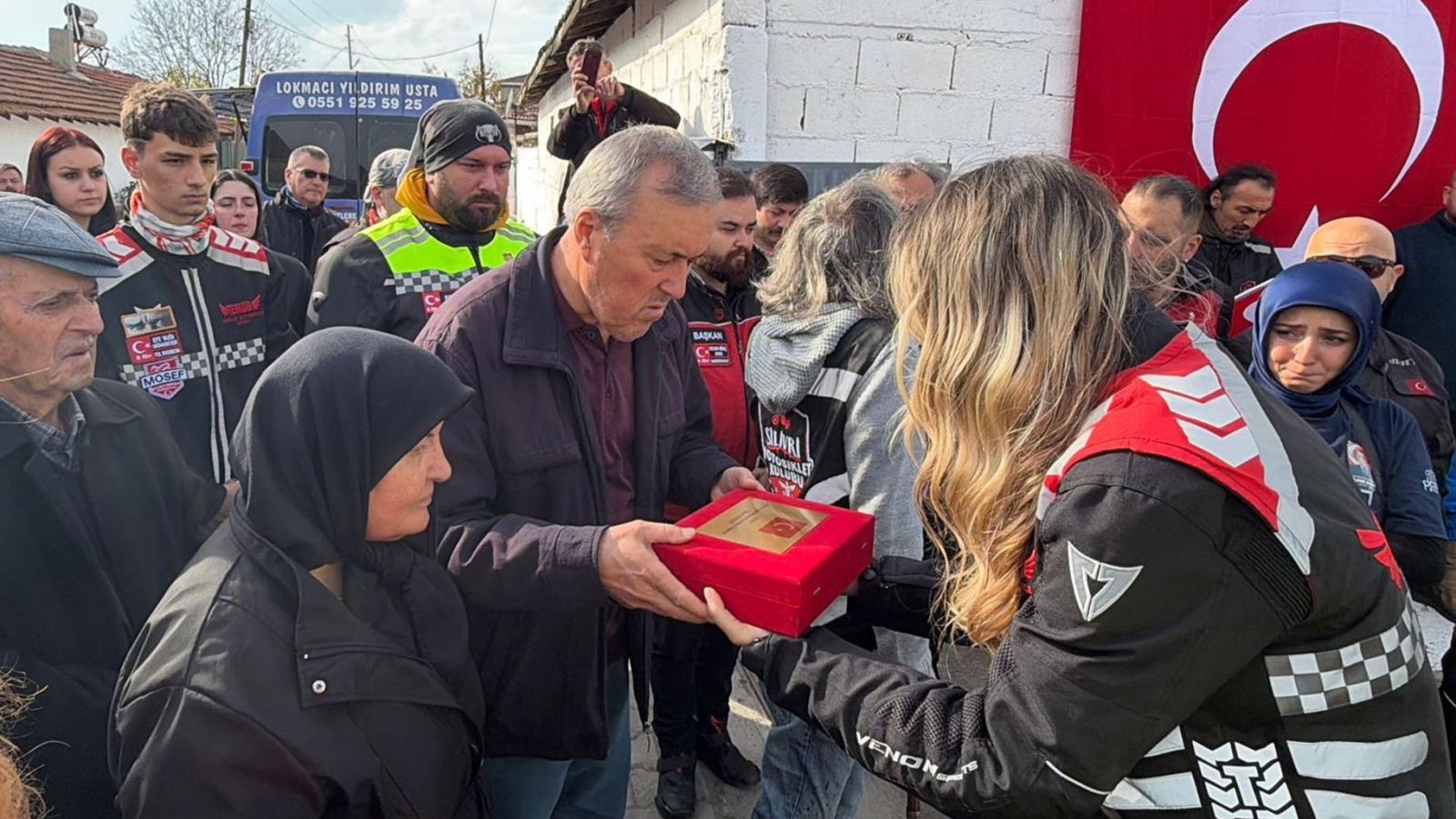 Silivri Motosiklet Kulübü Başkanı Özkan Kandemir de "Bizler bakkala gönderebileceğiniz çocuklarız. Bizler 'Gelin saçınızı okşayalım' diyeceğiniz çocuklarız. Sizlerin evinizi öğrendik, yurdunuzu öğrendik. Bundan sonra her kulübümüz, her arkadaşımız fırsat buldukça sizlere uğrayacak, sizi asla yalnız bırakmayacağız. Allah sizden razı olsun, bu vatana bir evlat verdiniz. Ne mutlu ki böyle yüce gönüllü bir anne-baba, ne mutlu ki böyle hayırlı bir evlat yetiştirdiniz" dedi. (DHA)