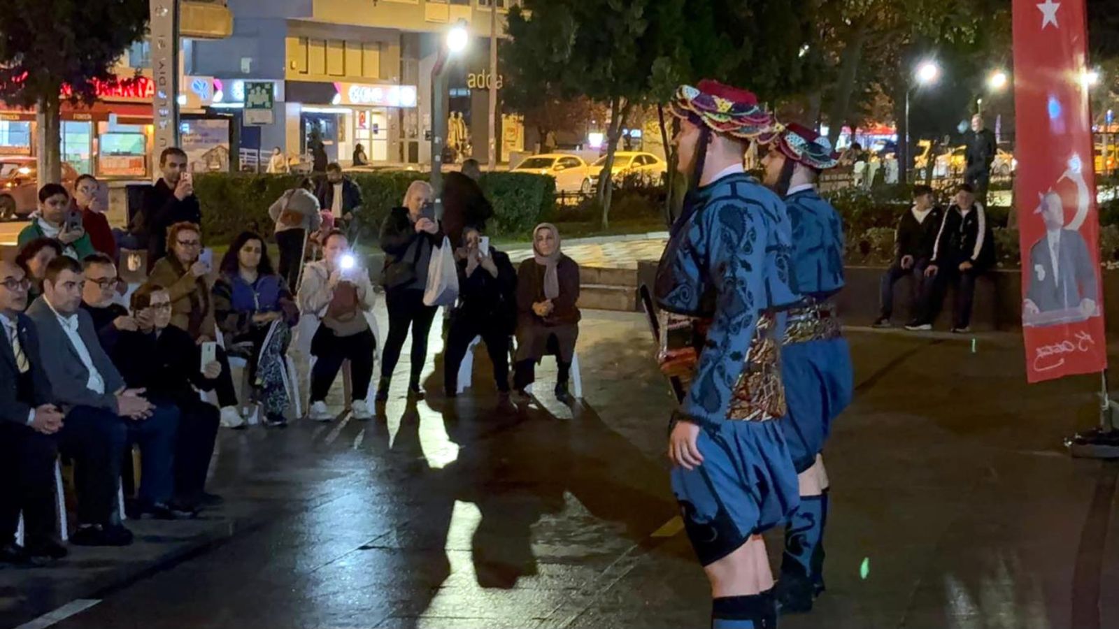 Ellerinde Türk bayrakları, Atatürk fotoğrafları ve meşaleler taşıyan vatandaşlar, sahil dolgu alanda bulunan Harf İnkılâbı Anıtı önünde toplandı.