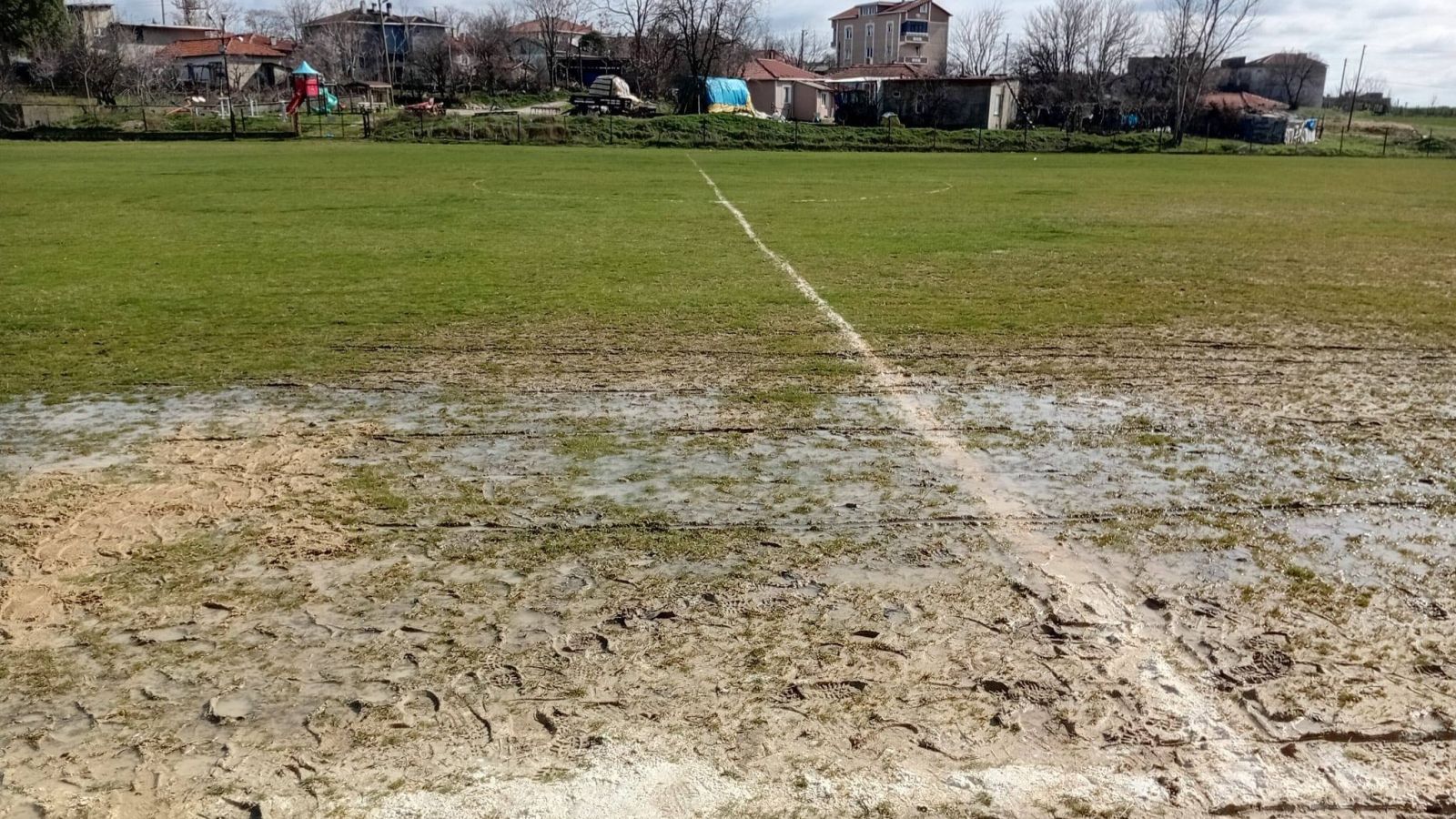 Kentte oynanacak karşılaşmalar öncesi sahayı kontrol eden orta hakemler, yağış sonrası saha zeminlerinin zarar görmesi nedeniyle karşılaşmaları erteledi.